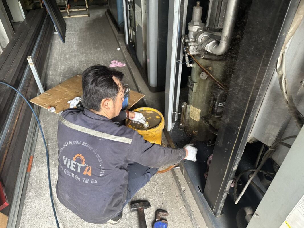 Hình ảnh thực tế quá trình bảo dưỡng máy nén khí tại Hải Phòng của Thiết Bị Việt Á