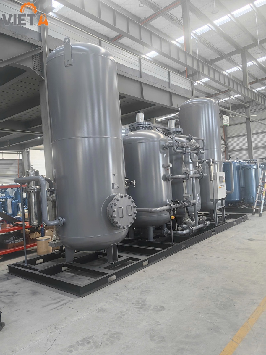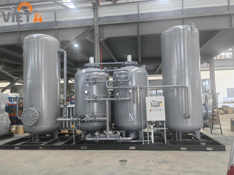 Tháp hấp thụ tách khí Nitơ PSA là thiết bị quan trọng trong hệ thống tạo khí Nitơ, hoạt động theo nguyên lý hấp phụ biến thiên áp suất để tách Nitơ tinh khiết từ khí nén. Thiết Bị Việt Á cung cấp giải pháp hệ thống Nitơ PSA tối ưu; liên hệ Hotline 0988 947064 (em Thúy) để được tư vấn nhanh.